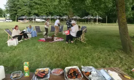 Wspólne Czytanie pieśni, trenu i fraszek nie odbyłoby się bez dekoracji, jakie uświetniły całą akcję. I tak wsparciem dla czytających członkiń DKK w Kwakowie: fraszki - "Na lipę" w wykonaniu Pani Ireny Czosnyk oraz "Na zdrowie" zaintonowanym przez Panią Iwonę Drywę oraz dla Pani Bożeny Przyborowskiej, która przedstawiła wybrane fragmenty "Pieśni Świętojańskiej o Sobótce" stały się Panie: Halina Drywa i Iwona Wronka. Baner z Narodowym Czytaniem i piękna gałąź, choć odwoływały się do poetyckiego tytułu, zdecydowanie przekonały, że "nie ma lipy" przy takim zaangażowaniu. Szczególne podziękowania kierujemy do Pani Grażyny Pioterek, dyrektor Szkoły Podstawowej im. Jana Kochanowskiego w Kończewie za użyczenie portretu patrona, który posłużył do deklamacji "Trenu VIII", nadając wypowiedzi bardziej dramatycznego charakteru. A za wypożyczenie strojów, jakie umożliwiły przeniesienie się do epoki odrodzenia dziękujemy serdecznie Nowemu Teatrowi im. Witkacego w Słupsku. Ukłony!